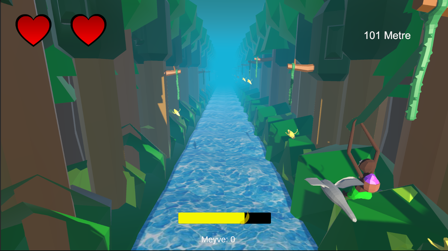 ellerinize saglik! cok eglenceli ve temayi yansitirken oyun olmayi basaran cok iyi bir ornek markettekki item galiba bugli anladigim kadariyla bizi basta ucurma yardimi yapmali ama default olarak oyle geliyor :D 1000 metre ve 50 muz yapmayi basardim cok guzeldi, gelistirin bunu!
